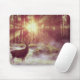 Männliche Hirsche im Misty Woods bei Sonnenaufgang Mousepad