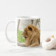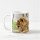 Profilbild eines männlichen Löwen, der im Gras ruht. Design auf beiden Seiten der Tasse.