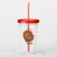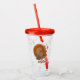 Dieser Acryl-Drink-Trommel mit Stroh und Deckel hat einen männlichen Truthahn stehend in einem Haufen von Herbstfarbenen Blätter mit Herbstfarbenen Federn in Braun und Orangen vorne und hinten.