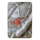 Ein knallroter Kardinal verleiht einem schneebedeckten Tag einen farbenfrohen Pop.