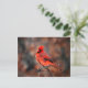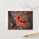 Ein wunderschöner Kardinal wartet an einem schneebedeckten Tag auf seinen Zug.