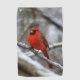 Ein knallroter Kardinal verleiht einem schneebedeckten Tag einen farbenfrohen Pop.