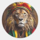 Männlicher Löwe in Rastafarian Outfit Classic Round Sticker gekleidet