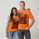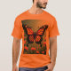 Ein skurriles, hochauflösendes Bild eines lebendigen, mehrfarbigen Schmetterlings mit einem schönen, aufwändigen Design auf seinen Flügeln, umgeben von einigen strategisch platzierten Blume und Blätter. Der Schmetterling sollte in einer spielerischen, dynamischen Pose dargestellt werden, als ob er gerade fliegen würde. Seine Flügel breiten sich aus und sein Körper neigt sich leicht zu einer Seite hin. Die allgemeine Stimmung des Bildes ist leichtsinnig und humorvoll, mit dem Schwerpunkt, den sorglosen Geist des Schmetterlings zu erfassen.