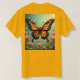 Ein skurriles, hochauflösendes Bild eines lebendigen, mehrfarbigen Schmetterlings mit einem schönen, aufwändigen Design auf seinen Flügeln, umgeben von einigen strategisch platzierten Blume und Blätter. Der Schmetterling sollte in einer spielerischen, dynamischen Pose dargestellt werden, als ob er gerade fliegen würde. Seine Flügel breiten sich aus und sein Körper neigt sich leicht zu einer Seite hin. Die allgemeine Stimmung des Bildes ist leichtsinnig und humorvoll, mit dem Schwerpunkt, den sorglosen Geist des Schmetterlings zu erfassen.