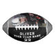 Benutzerdefinierter Teamname Spielernummer Black Gray Stripe Foto Football. Moderner sportlicher, individueller Fußball mit Ihrem Namen, Teamname Ihrer Nummer und des Jahres auf einer Platte und ein individuelles Foto auf der zweiten Tafel - fügen Sie Ihren Text und Ihr Foto hinzu. Sportliches Design mit schwarz-grauen Streifen. Sie können jeden Text auf dem Fußball ändern oder löschen. Ein perfektes Geschenk für einen Fußballspieler, Teamkollege, Trainer. Tolle Erinnerung an Ihren Lieblingssport.