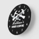Manly hammer Logo Autogarage oder Mancave Wanduhr. Geschenkte schwarz-weiße Wanduhr. Cool gekreuztes Werkzeugdesign mit personalisiertem Namen und Hintergrundfarbe. Weihnachten oder Geburtstag Geschenkidee für Ehemann, Vater, Freund, Großvater, Chef, Mitarbeiter, Tischler, Bauunternehmer, Junge, Kinder etc. Trendy Wohngestaltung Uhr für Mechaniker, Auto Reparaturwerkstatt, Garage, menschliche Höhle etc. Laden Sie Ihr eigenes Firmenlogo oder Bild optional hoch.