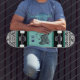 Manta Ray Teal Black White Polynesian w Initial Skateboard