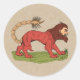 A scorpion-tailed Manticore with cinnabar-colored pelt grimaces fiercely in this original illustration based mainly upon Ctesias's description of this man-eating hybrid beast.