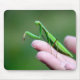 Nahe von einer Gottesanbeterin auf einer menschlichen Hand.