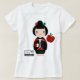 Dieses Kokeshi hat einen Apfelmuster-Kimono und einen Apfel auf ihrer Hülse.
