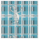 Ein niedlicher Zebra, der einen fröhlichen Sprung in die Luft macht. Der Hintergrund ist ein kariertes Blau-Weiß-Muster. Dieses Muster schneidet in die schwarzen Zebras Streifen. Der humorvolle Slogan lautet: "Ich gehe etwas kariert", was ein Stück ist, das verrückt wird.
