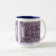 Helle Juwelton Farben und ein Hand-gezeichneter, symmetrischer Entwurf, geben dieser Tasse das Gefühl der nahöstlichen und afrikanischen Mosaiknordfliesen.
