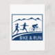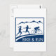 Darstellung einer Silhouette von Marathonläufern und Radfahrern mit Berg- und Wortfahrrad und Lauflauf im Retro-Stil