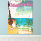 Marbella Cartoon Reiseplakat. Marbella Spanien Strandposter mit akustischer Gitarre.