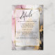 Details der Gäste | Handgemalte Marmorspritze in Goldtönen, blassrosa und Holzkohle schwarz - und ein goldener Rahmen mit einem schieren weißen Mittelpunkt, der den Einladungstext hervorhebt. Handgeschriebener Skriptkalligrafiettext auf der Diagonale oben ermöglicht eine warme persönliche Anziehungskraft - einfach zu personalisieren Vorlage.