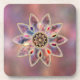 Ein blasses, aber farbenfrohes Fraktal Design wie Sternwolken im Weltraum oder mehrfarbiger Marmor in Rosa-, Lila-, Pfirsich- und Blautönen. Der Hintergrund ist eine bestickte Textur wie ein weit entfernter Nebel, und das Stück wird durch eine goldfarbene gerahmte Sternexplosion Medaillon betont, als wäre sie mit goldenen Filigree intariert. Das Bild wird durch glatte opal-ähnliche Juwelen und facettierte Edelsteine ergänzt, die in einem goldenen Floret eingetaucht sind.