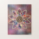 Ein blasses, aber farbenfrohes Fraktal Design wie Sternwolken im Weltraum oder mehrfarbiger Marmor in Rosa-, Lila-, Pfirsich- und Blautönen. Der Hintergrund ist eine bestickte Textur wie ein weit entfernter Nebel, und das Stück wird durch eine goldfarbene gerahmte Sternexplosion Medaillon betont, als wäre sie mit goldenen Filigree intariert. Das Bild wird durch glatte opal-ähnliche Juwelen und facettierte Edelsteine ergänzt, die in einem goldenen Floret eingetaucht sind.