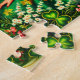 This jigsaw puzzle features a cheerful pin-up girl wearing a vibrant green dress adorned with shamrocks, embodying the spirit of March and St. Patrick's Day. Set against a springtime background, her playful pose and colorful outfit bring luck and joy, creating a vintage celebration of Irish charm.