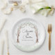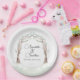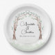 Diese eleganten und romantischen Teller der Hochzeit sind mit einem Wasserfarbenmärchen-Bogengang von Baumzweigen ausgestattet. Die Gliedmaßen, Äste und Blätter der Bäume überqueren, um einen wunderschönen Eingang in einen Kiefernwald zu schaffen. Der Bogen umschließt die Namen des verheirateten oder verlobten Paares. Es ist perfekt für einen Boho Stil, Märchen inspiriert, oder romantische Hochzeitsthemen. Die Namen werden in einem eleganten Skript-Schriftart gedruckt, den Sie personalisieren können, um eigene Namen oder andere benutzerdefinierte Texte einzufügen.