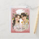 Mit dieser bezaubernden Postkarte des Save the Date Foto erfassen Sie die Magie Ihrer Liebe. Der zarte, rosa Blumenrahmen auf den vorderen Sets der Bühne für Romantik, während im hinteren Teil ein subtil verblasstes Bild eines Märchenschlosses der Prinzessin zu sehen ist, das Ihrer Hochzeitsankündigung eine Touch Magie verleiht. Passen Sie mit Ihrem Foto und Ihren Details auf, um einen einzigartigen, zeitlosen Sake zu erhalten.
