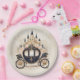Dieses elegante Design besticht durch eine feminine Märchenkutsche in marineblau mit einer Prinzessin-Burg hinter einer mit blindfarbenen rosa Blumen geschmückten Kutsche.