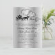 Eine zauberhafte Märchen-Hochzeitseinladung mit einem antiken Pferd gezeichnet Kutsche und Herz mit Monogramm in Silbergrau.