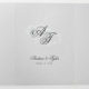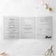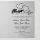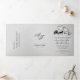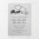 Bezauberndes Märchen dreifacher Hochzeitseinladung mit einem antiken Pferd gezeichnet Kutsche und Herz mit Monogramm in Silbergrau.