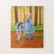 Aquarellmalerei eines Mädchens und Hund verloren im Wald. Aus einem Roman von Rachel Armington.