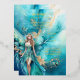 Eine lebendige reale Foliendruck (Wahl zwischen Gold, Rose oder Silber) Erholungen vor einem lebendigen, aquamarinen Aquarell und goldenen Blume Hintergrund. Eine exquisite Fee mit offenen Flügeln ist am unteren links Rand stehend und schaut auf die bearbeitbaren Text-Vorlagen. Sie scheint zu schimmern und zu glänzen und hat lange blonde Haare, die über ihre Schulter kaskadieren. Zwei kleine Schmetterlinge kümmern sich darum, dem Gesamtbild ein mythisches Ambiente zu verleihen. Die Rückseite hat das gleiche Design und eine Single-Vorlage für zusätzliche Formulierungen, falls erforderlich. Wenn nicht, löschen Sie einfach die Vorlage, um die Grafik nur verlassen. Ideal für einen "Fee-Theme" Geburtstag, ein Märchen-Brautparty oder eine verzauberte Geburtstagsfeier für Volksfrauen.