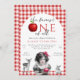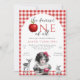 Märchenhafte Prinzessin Fairest One von allen 1. Geburtstagsfeiern - Inspiriert durch das Märchen Little Snow White des Klassikers Grimm, ist diese bezaubernde Einladung perfekt für die erste Geburtstagsfeier Ihrer kleinen Prinzessin. Ein junges Mädchen mit dunklem Haar und rosa Wangen mit rustikalem Rot-Weiß-Gingham-Hintergrund hält einen Apfel, umgeben von Waldkreaturen wie Hirschen und Kaninchen in Vintag Schwarz-Weiß. Die Einladung lautet "The Fairest ONE of All" mit einem Apfel als O, in einer charmanten Mischung aus Drehbuch und fett roten Schriftart. Ideal für einen märchenhaften Geburtstag oder ein schneeweißes Party. Erhältlich in gedruckten und Öko-freundlichen Downloads, ideal für den Austausch per Text, E-Mail oder Social Media.