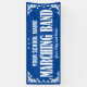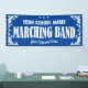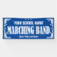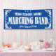 Marching Band Parade Banner für Schule oder Organisation mit einem lustigen dekorativen Wirbel und Sterne grenzen in Weiß. Bearbeiten Sie den Text nach Namen und Stadt. Ändern Sie den blauen Hintergrund in eine beliebige Farbe.