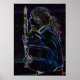 Fotograf veränderte sich zu einer glühenden Kontur, abstrakt von einem uniformierten weiblichen Marching Band Mitglied im Profil, wobei sie ihren Federhut in der einen Hand und eine Klarinette in der anderen hielt.