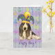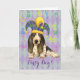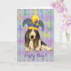 Niedlicher Basset Hound Welpe, gekleidet in festlicher Junghut, bereit zum Spaß auf Mardi Gras oder zu jeder anderen Zeit. Gutes Geschenk für sich und Ihre Basset-liebende Familie und Freunde.