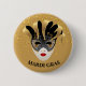 Dieses runde Button-Button wird mit einem festlichen Mardi Gras Maskenprint gezeigt. Standard Größe angezeigt Verändern Sie diese Position oder kaufen Sie, wie es ist.