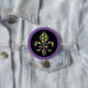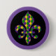 Dieses runde Button-Button wird mit einem festlichen Mardi Gras Fleur De Li Printdesign gezeigt. Passen Sie dieses Objekt an oder kaufen Sie, wie es ist.