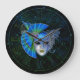 Mardi Gras Clock, Blue Green Mardi Gras Mask Große Wanduhr