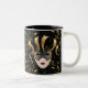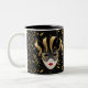 Diese Keramik Kaffee-Tasse wird in einem festlichen Mardi Gras Maskenprint gezeigt. Bild
