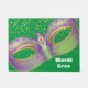 Diese Türmatte ist grün mit einem goldenen Sternenprint mit einem festlichen Mardi Gras Karneval Maske gedruckt. Passen Sie dieses Objekt an oder kaufen Sie, wie es ist.
