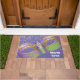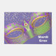 Diese Türmatte wird lila mit einem Goldsternprint mit einem festlichen Mardi Gras Karneval Maske gedruckt. Passen Sie dieses Objekt an oder kaufen Sie, wie es ist.