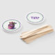 This paddle fan is shown in a festive Mardi Gras king cupcake print.