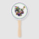 This paddle fan is shown in a festive Mardi Gras musician print.