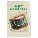 Mardi Gras energy comes to life in a vibrant drum decorated with rich purples, greens, and golds, accented by beads, feathers, and sparkling details. The lively composition captures the rhythm and excitement of parade culture, making it a versatile design for home and living products as well as invitations and greeting cards. Its dynamic colors and ornate textures add a festive flair that works beautifully for celebrations, parties, and any décor that calls for a touch of New Orleans spirit. This design delivers the joyful essence of Mardi Gras in a bold, decorative style perfect for many applications.