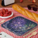 Striking Purple Green and Gold Mardi Gras Fireworks with editable text. Add your family name or any text you wish