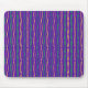 Dieses Mauspad hat ein geometrisches Mardi Gras-Design, wie flache Ovale, die sich durch das Design in Gold und Grün auf einem lila Feld wiederholen.