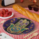 Mardi Gras Gold Lila Grüne Hamsas Art Pappteller