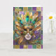 Mardi Gras Gold und Green Peacock Feather Mask Karte