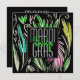 Mardi Gras Party Flyer/Einladungen mit handgezeichneten botanischen Grünelementen