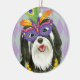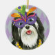 Niedlicher Havanese Welpe, gekleidet mit festlicher Federmaske und Perlen, bereit zum Vergnügen auf Mardi Gras oder zu jeder anderen Zeit. Gutes Geschenk für sich selbst und Ihre Havanna liebende Familie und Freunde.