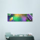 Textural iridescent Mardi gras Hintergrund mit Flecken von lila, gelb und grün, mit flauschigen Federn und glänzenden Perlen dekoriert. Mardi Gras Urlaub.